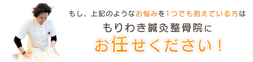当院がご提供している“もりわき式美整骨”は、体にさまざまな不快感をもたらす骨格の歪みを整え、さらに自然治癒力も高めることができます。また骨格を整えることで、マッサージや鍼治療では届かない深層筋や神経・血管の調子を正すことにも繋がります。